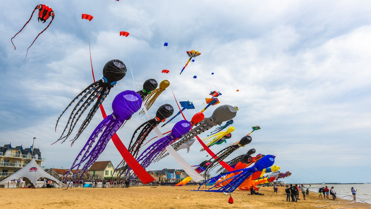 Pour cette édition 2026, le festival voit les choses en grand et promet un spectacle encore plus immersif. Sur la plage, les cerfs-volants XXL transforment le ciel en véritable monde fantastique : dauphins, poulpes, girafes géantes, raies manta ou tortues volantes prennent leur envol dans un ballet aussi surprenant que poétique. Nouveauté cette année, le ballet des anneaux géants fascine par ses tourbillons de tissu qui dansent dans les airs, créant un effet visuel hypnotisant. Mais au-delà du spectacle, c’est aussi un voyage à travers le monde…