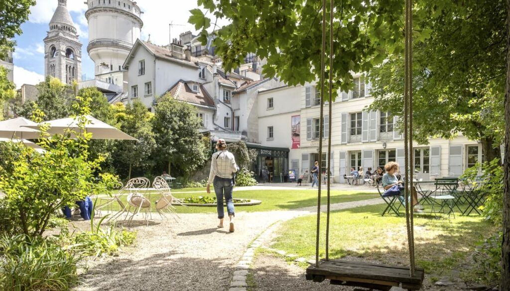Le musée de Montmartre cache, derrière le 12 rue Cortot, les jardins Renoir et leur joli café en terrasse. C’est ici, dans cette bâtisse du XVIIe siècle nichée sur les hauteurs de la butte, qu’Auguste Renoir s’installa en 1876 pour peindre plusieurs toiles majeures, dont La Balançoire et Le Bal du moulin de la Galette.