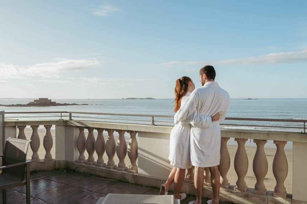 Entre le Mont Saint-Michel et le Cap Fréhel, aux portes de Saint-Malo, il y a un endroit qu’on n’est pas prêt d’oublier. Emeria, c’est l’hôtel qu’on rêve de trouver au bout d’une route côtière, accessible en 2h30 de TGV depuis Paris, à 70 km de Rennes, et qu’on n’a aucune envie de quitter une fois arrivés. Dès l’entrée, l’atmosphère donne le ton : décoration claire et soignée, belle cheminée, affiches à l’effigie de l’hôtel, petits salons feutrés pour se poser et profiter du lieu. Les chambres, elles, jouent sur deux registres qu’on adore tous les deux : vue panoramique sur la mer pour les amateurs d’horizon, ou esprit cottage chaleureux pour ceux qui préfèrent l’intimité d’un chalet dans les landes. Dans les deux cas, on s’y sent vraiment bien. Mais Emeria, c’est surtout son institut thalasso et spa de plus de 2 800 m², un des plus grands de la côte, avec piscine, sauna, hammam, bain froid, couloir à contre-courant et jacuzzi extérieur face à la nature. Côté table, trois restaurants avec trois ambiances distinctes. Notre coup de cœur ? L’Arsaour, qui propose le soir une cuisine aux ambiances d’Amérique Latine et d’Asie, audacieuse et généreuse, pensée pour être partagée autour de la table. Cinq salles de séminaire entièrement équipées complètent l’ensemble pour les voyageurs d’affaires. Une adresse où l’on retournera sans hésiter pour un café afin de découvrir l’endroit, avant de se laisser tenter par un séjour complet, entre hôtel et spa, pour véritablement décrocher.